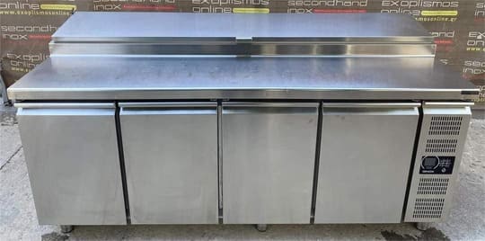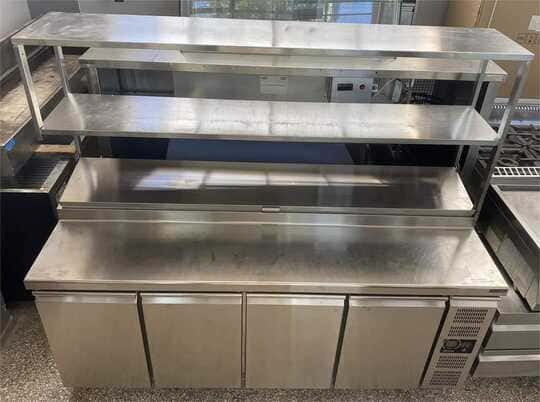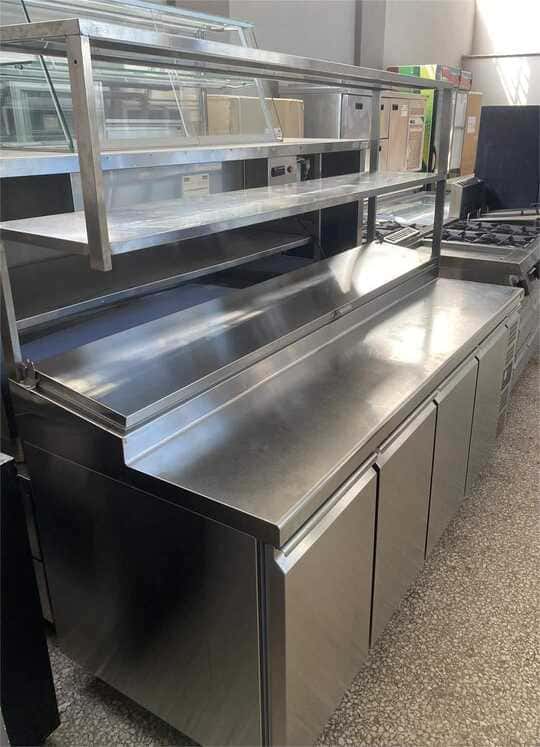 Μεταχειρισμένο Ψυγείο Πάγκος Σαλατών 205x80x175Cm Για 9Gn 1/3 Με Διπλή Ραφιέρα Για Σύνδεση Σε Απομακρυσμένες Μονάδες GINOX