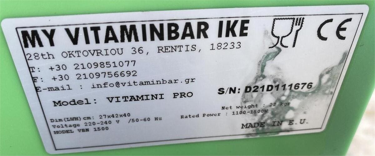 Μεταχειρισμένος Αποχυμωτής Επιτραπέζιος 28x45x49Cm VITAMINBAR VITAMINI PRO VEN 1500