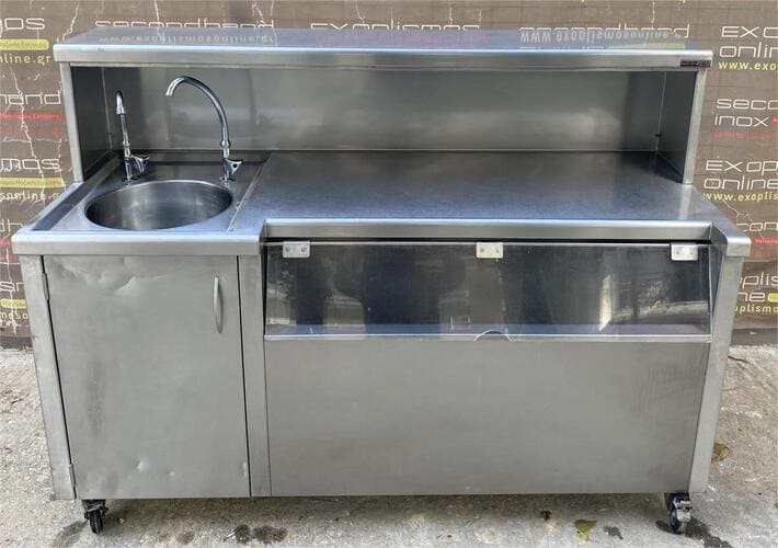 Μεταχειρισμένο Ερμάριο / Πόστο Ανοξείδωτο Με Πάσο 170,5x70x124,5Cm Γούρνα & Αποθήκη Πάγου