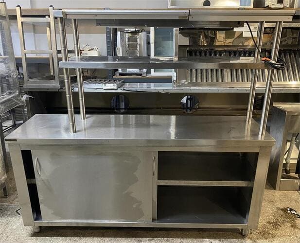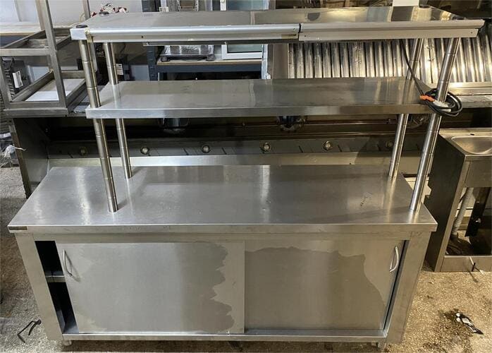 Μεταχειρισμένο Ερμάριο Ανοξείδωτο Με 2 Συρόμενες Πόρτες 180x50x85Cm Διπλό Ράφι 138x35x80Cm & Θερμαντική Λάμπα