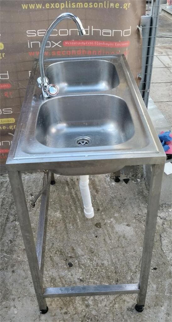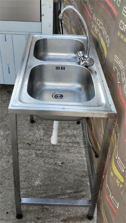 Μεταχειρισμένη Λάντζα Ανοιχτή Ανοξείδωτη 90x47x87Cm Με 2 Γούρνες 36x31x16Cm