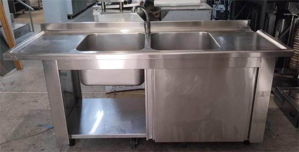 Λάντζα Κλειστή Ανοξείδωτη 195x70x86Cm Με 2 Γούρνες 50x50 Μεταχειρισμένη
