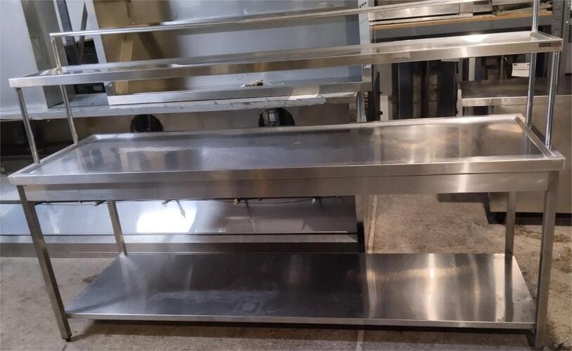 Μεταχειρισμένο Τραπέζι Ανοξείδωτο Λαντζωτό Με Ράφι 231x70x120Cm
